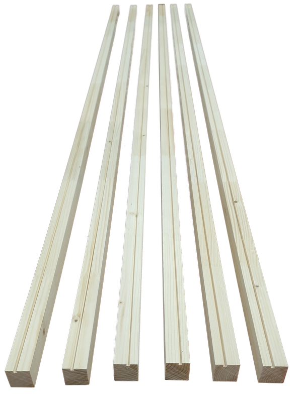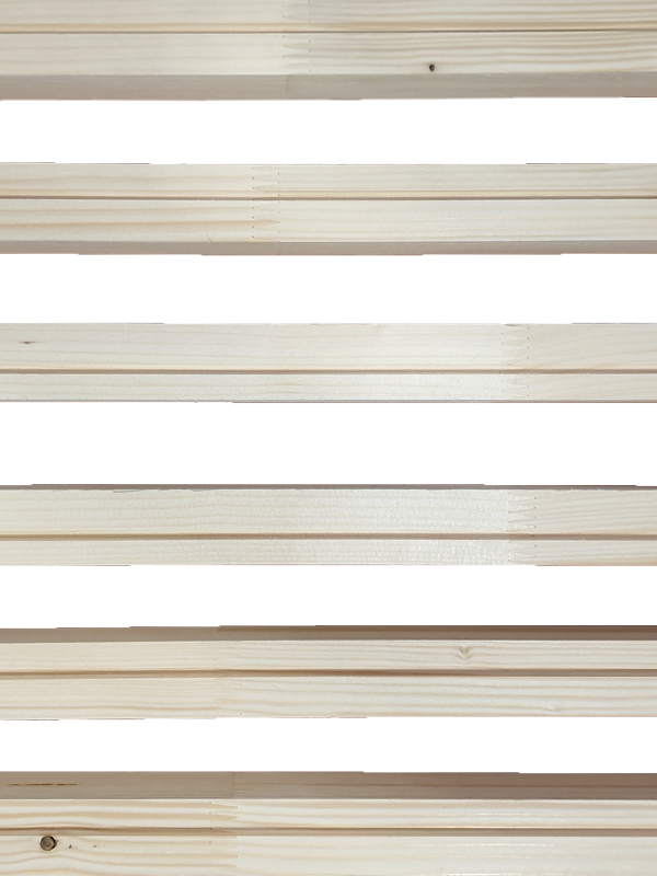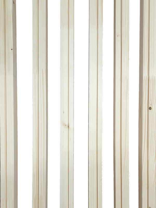 Listelli in Abete 1° scelta, mm 35,6 x 36 x 213. La giunzione “finger joint” o a pettine, ossia due parti in legno massiccio incastrate ed incollate da denti a forma di cuneo, crea una connessione estremamente stabile che permette di ottenere aste uniformi più rigide e senza storture evitando parti nodose, borse di resina e altre parti difettose. Sono idonei per telaio interno del pannello porta.
