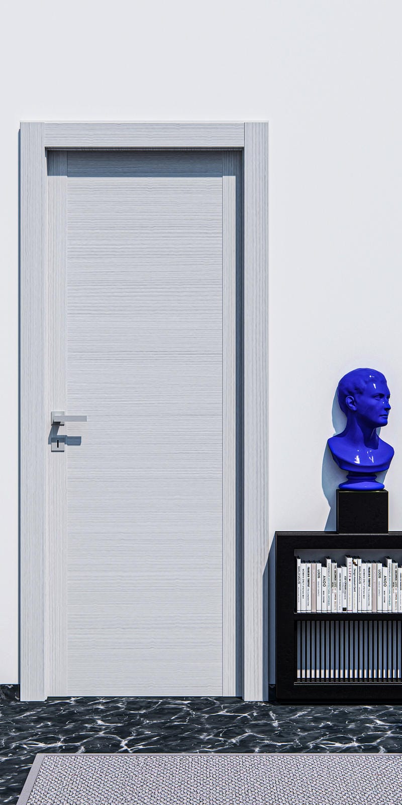 Questa collezione si contraddistingue per l’intersezione delle vene del decorativo e dal bassorilievo tra montanti esterni e pannello interno; infatti, l’anta è prodotta con montanti di spessore mm 44 (struttura in legno massello) con venatura verticale, ed il pannello ribassato di spessore mm 38 con venatura orizzontale. È prodotta in tutti i decorativi della tabella colori.
